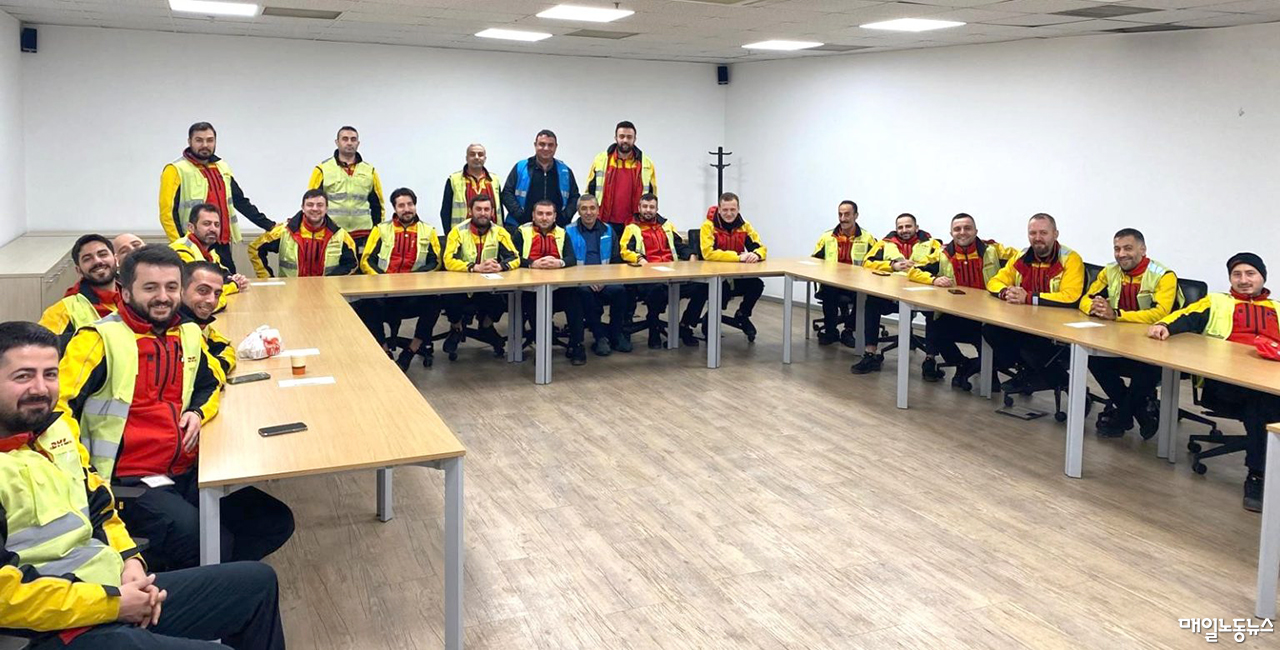 12일 <매일노동뉴스> 취재를 종합하면 국제운수노련(ITF) 가맹조직인 튀르키예물류노조(TÜMTİS)와 DHL Express(택배)는 현지시각으로 지난 3일 단체협약을 체결했다. 노조는 협약을 통해 임금인상 성과를 거뒀다. 조합원 600여명은 올해 1·2월 인상분을 소급해 이달 30% 인상한 임금을 받는다. 4월에는 14.38% 인상한 급여를 수령하게 된다. 2026년 임금은 연간 물가상승률에 따라 인상하기로 했다. 또 연간 상여금과 식비·초과근무·휴일수당과 결혼 지원·출산수당 등을 포함해 퇴직기여금도 향상된 수준으로 결정됐다. 튀르키예물류노조에 따르면 단협 체결을 앞두고 지난 2일 열린 노조 총회에서 압도적 다수가 잠정합의안을 지지했다.