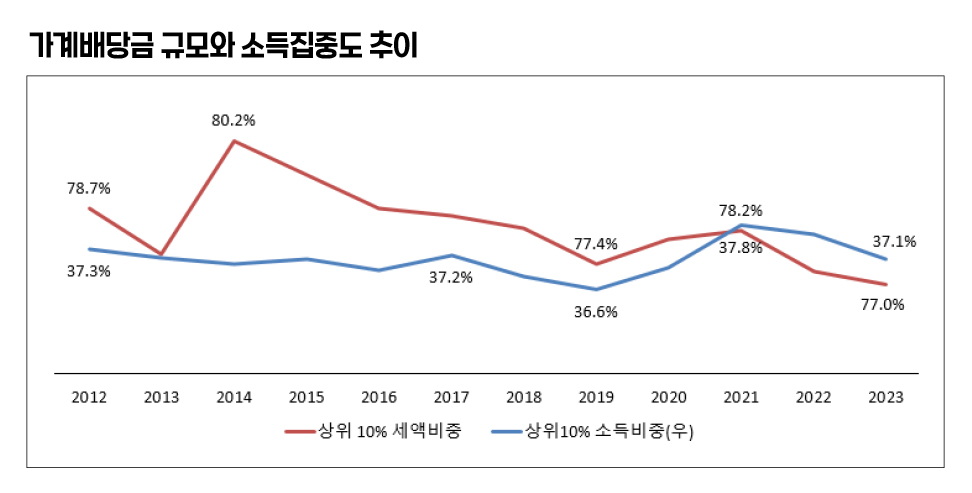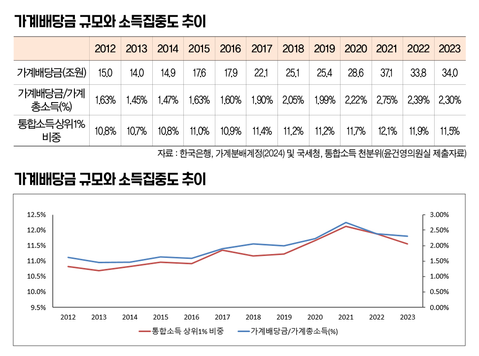 가계배분 배당금 규모와 비중, 소득집중도에 영향 커