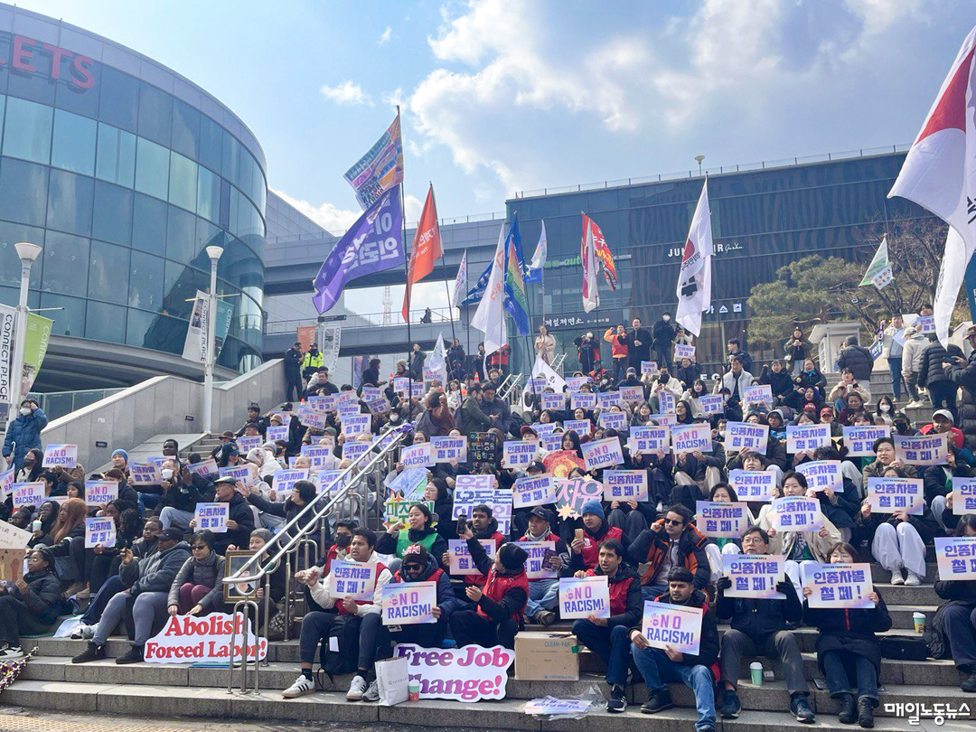 우다야 라이 이주노조 위원장은 “강제노동과 사업주의 폭행·폭언·협박을 견디지 못한 이주노동자들이 자살까지 하고 있다”며 “이주노동자는 위험한 노동환경으로 인해 산재사망이 내국인의 3배, 임금체불은 2배나 된다. 돈 벌러 왔다가 돈을 떼이는 현실”이라고 말했다. 우다야 위원장은 “이주노동자도 같은 사람, 같은 노동자로서 임금·근로조건·안전·숙소·건강·사회보장을 동등하게 대해 줘야 한다”며 “권리 기반의 이민정책을 만들어 이주노동자 인권과 노동권을 보장하고 장기체류와 영주 기회를 주는 정책을 펴 달라”고 주문했다.