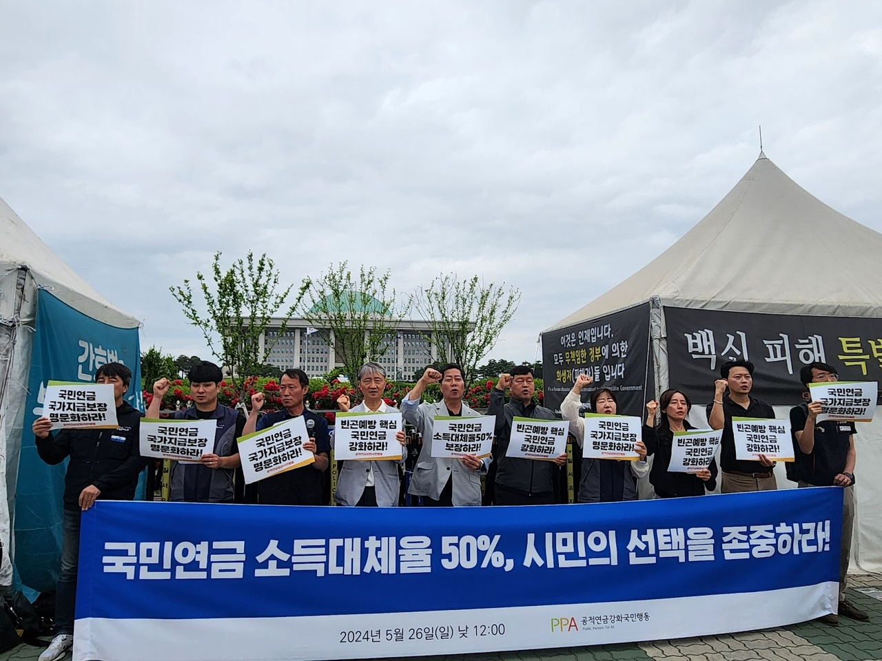 양대 노총이 참여한 공적연금강화국민행동(연금행동)은 17일 오전 국회 앞에서 민주당의 연금개혁 졸속 합의 규탄 기자회견을 열고 “이재명 민주당 대표와 민주당은 연금개혁 졸속합의를 즉각 중단하라”고 요구했다.