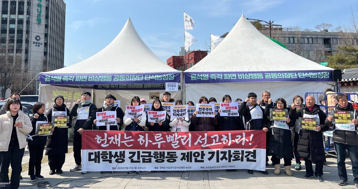 윤석열 대통령 구속취소 뒤 각계의 시국선언이 끊이지 않고 있다. 대학생들은 19일 1천명이 즉각 파면을 촉구하는 단식을 하기로 했다.