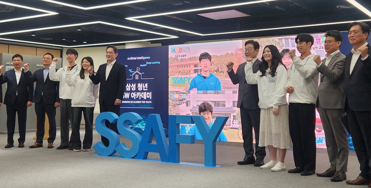 이 회장은 이 대표에 “기를 많이 받을 것 같다”고 덕담했다. 이 회장은 “저희 삼성이 소프트웨어의 역량을 가지고 우리 사회와의 동행이란 이름 아래, 대한민국의 미래인 우리 청년들을 미래를 위해, 단순히 사회 공헌을 떠나 우리 미래에 투자한다는 믿음으로 (SSAFY를) 지금까지 끌고 왔다”며 “우리 SSAFY 교육생들과 우리 대한민국 미래, 또 AI 미래를 짊어지고 나갈 청년들을 방문해주 신 점에 정말 감사드린다”고 말했다.