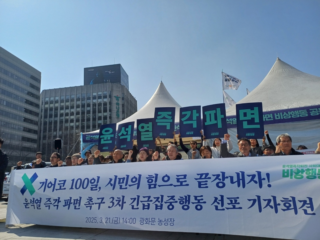 이날 공동의장단은 시민의 참여를 호소했다. 헌재에 선고를 호소하는 기존 태도를 전환해 헌재의 파면선고를 이끌겠다는 각오다. 이들은 “상인은 하루 장사를 멈추고 장애인·철거민·노점상·문화예술인도 광장에 모여 윤석열 즉각 파면과 헌재 선고를 요구할 것”이라며 “다음주 초 윤석열 파면 계획이 나오지 않는다면 헌재의 무책임한 시간끌기와 내란세력 밀어주기에 대한 시민의 분노를 똑똑히 보게 될 것”이라고 강조했다. 이들은 “광장 깃발은 한남동이 아닌 헌재를 향할 것”이라고 덧붙였다.