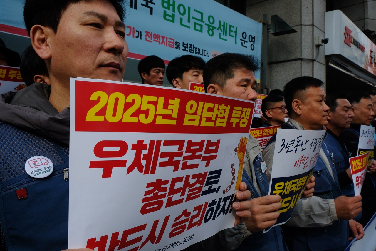 우체국 위탁 택배노동자들이 임금·단체협상을 앞두고 투쟁을 선포했다. 노동자들은 지난 3년간 배달 수수료가 동결되면서 실질 소득이 줄어들었다며 최소 물량 보장과 수수료 인상, 과로사 방지 대책 마련을 요구하고 있다.