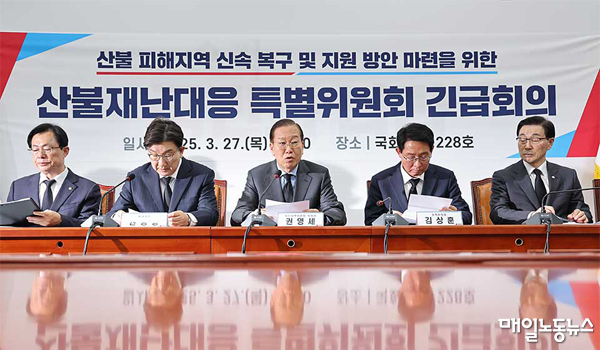 27일 여야는 각 당 차원의 논의체를 꾸리고 산불 대응 논의를 시작했다. 국민의힘은 이만희 의원을 위원장으로 하는 산불재난대응 특별위원회, 더불어민주당은 대규모 산불 피해 지원TF를 중심으로 피해 지원과 재발방지대책을 고민한다. 이날 오전 국회에서 열린 첫 특위 회의에서 이만희 위원장은 “기후변화에 따른 산불에 대응할 수 있도록 대형헬기 구입은 물론 장비 확보, 인력충원과 처우개선, 정부 내 업무분장에 이르기까지 국민의 생명과 재산을 지킬 수 있도록 앞장서겠다”고 말했다.