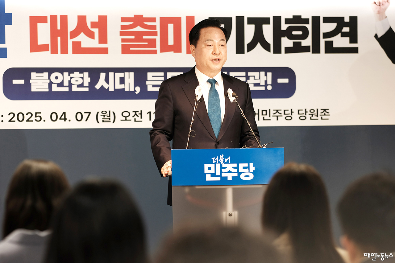 윤석열 전 대통령 파면으로 조기대선 국면이 활짝 열린 가운데 더불어민주당에서는 김두관 전 의원이 가장 먼저 출사표를 던지며 본격적인 대선 신호탄을 올렸다.