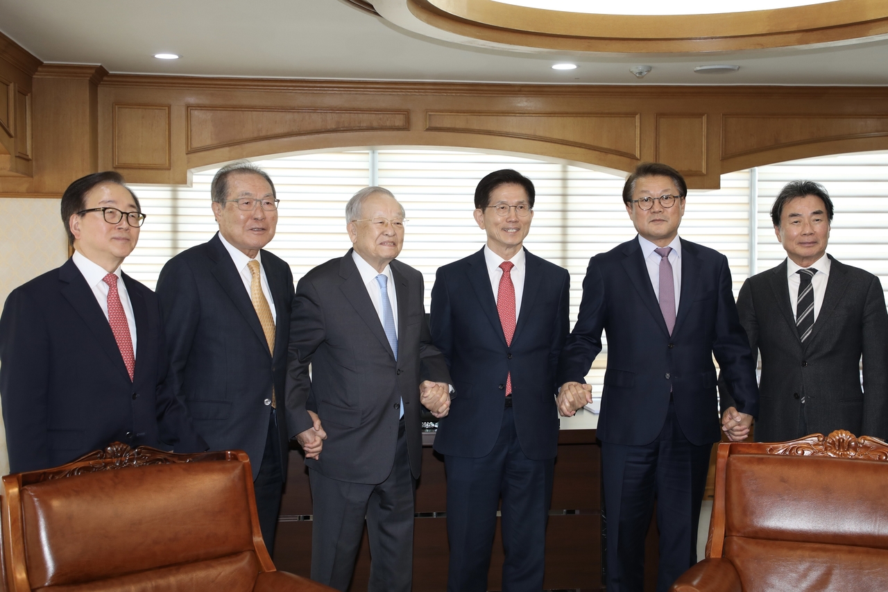김 전 장관은 청년 일자리 문제를 거듭 강조했다. 그는 “올해 청년 쉬었음 인구가 54만명이나 되는데 이들이 일자리가 없어서 그냥 쉬고 언제 취업할지도 모른다”며 “취업을 안 하면 결혼도 못 하고 결혼을 못 하니까 그 다음 것은 물을 것도 없이 어려운 처지에 있다”고 강조했다. 이어 “우리 기업은 전부 관세를 피해 미국으로 투자하려고 하는데 그러면 우리 청년은 어디서 취업하느냐”며 “보통 문제가 아닌데 손 회장이 좋은 방향을 제시할까 싶어서 왔다”고 말했다.