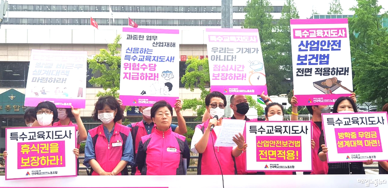 단체는 “특수교육지도사들의 업무 과중, 산업재해, 임금차별은 국가 책임 회피의 단면”이라며 “교육청은 방학 중 비근무, 지원수당 차별 등 특수교육지도사 저임금 구조를 해소해야 한다”고 강조했다.