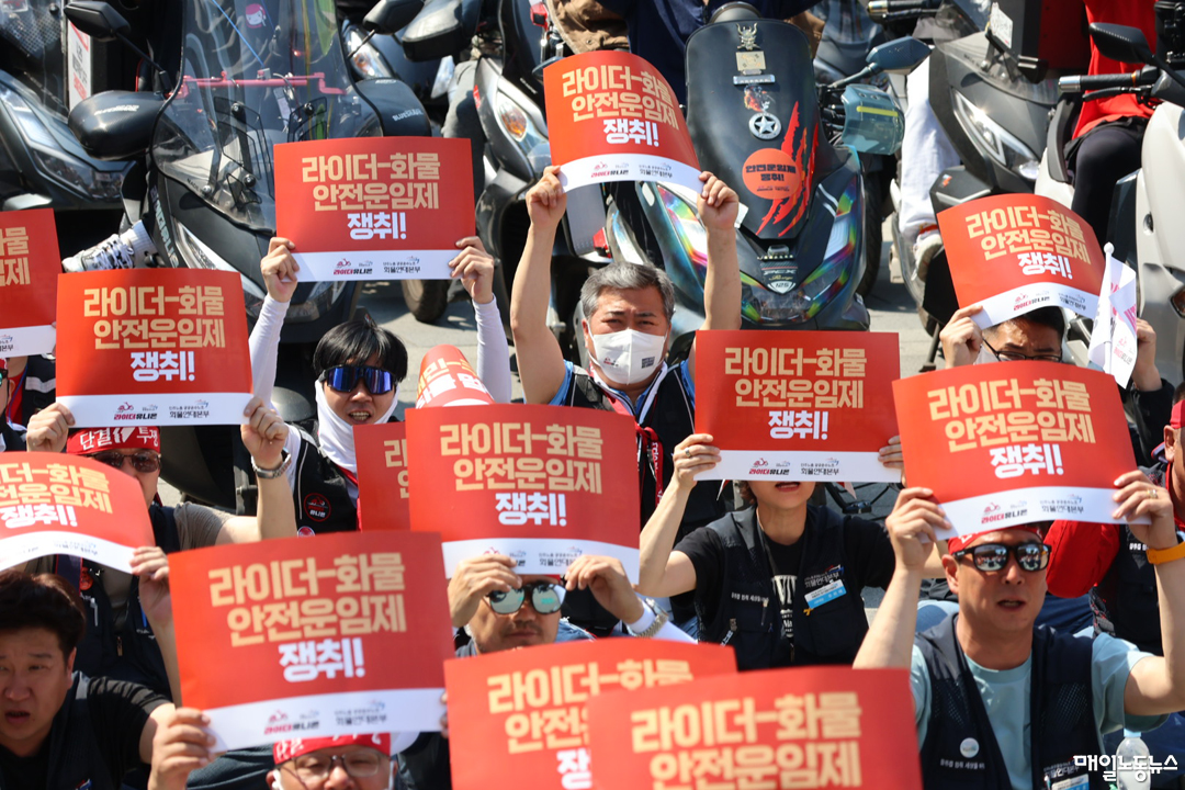 김동국 위원장은 “화물노동자들도 라이더와 마찬가지로 매번 도로 위에서 죽음의 질주를 한다”며 “안전운임제를 일몰시킨 윤석열은 퇴진했지만 이후는 우리가 만들어 나가야 한다”고 강조했다.