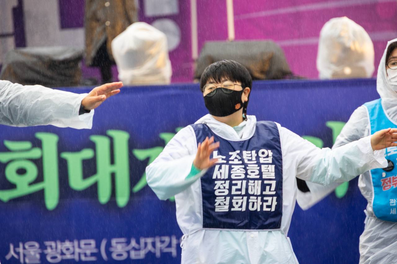 9일에는 고공농성을 이어오는 한국옵티칼하이테크 해고노동자와 세종호텔 해고노동자, 한화오션 비정규직을 응원하고 사태 해결을 촉구하는 노숙집회가 열렸다. 우리삶을바꾸는노동자공동행동은 9일 밤 김형수 금속노조 거제통영고성조선하청지회장이 고공농성을 하고 있는 서울 중구 한화오션 본사 앞에서 텐트를 치고 밤샘집회를 했다. 각각 해고 철회와 임금·단체협상 체결 등을 촉구하고 있는 이들 고공농성은 이날 기준 한국옵티칼 490일, 세종호텔 88일, 한화오션 58일째다.