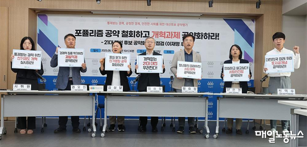 경실련은 “이재명 후보가 과거 공약했던 사회구조 개혁 의제를 대부분 후퇴시켰으며, 공약 전반에서 원칙과 방향이 실종되고 있다”면서 “이 후보가 진정한 개혁후보로 평가받기 위해서는 과거의 개혁적 기조를 되찾고 책임 있는 개혁공약을 다시 내놓아야 한다”고 주문했다.