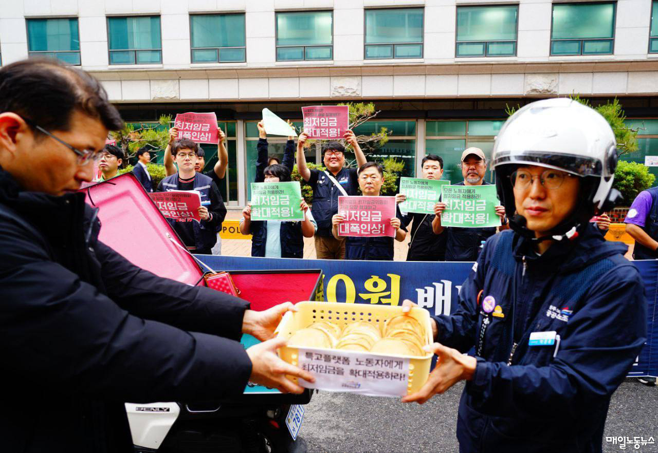 박정훈 부위원장은 “선거가 끝나자마자 직면해야 할 최저임금 이야기를 하는 후보가 없어 노동자들이 직접 배달하러 왔다”며 “물가 상승률과 경제성장률에도 미치지 못한 최저임금을 결정하는 170원짜리 최저임금위원회는 청산하라”고 말했다.
