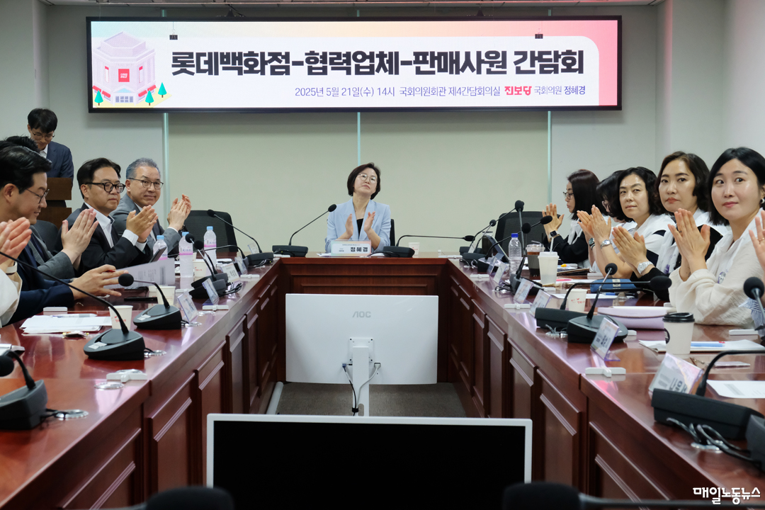 정혜경 진보당 의원은 21일 오후 국회 의원회관에서 정준호 롯데백화점 대표와 백화점면세점판매서비스노조가 참여한 간담회를 개최했다. 이날 간담회에서는 △감정노동 안전장치 미흡 문제 △여름 냉방시설 가동과 화장실 사용 문제 △정기휴일 및 갑작스러운 연장근로 등 근로환경 개선 문제 등이 논의됐다. 노조쪽에서는 한채운 샤넬지부장, 김연우 한국시세이도지부장, 하인주 로레알코리아지부장 등이 참여했다.