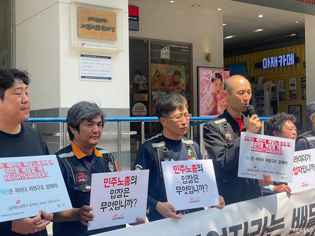 15일 <매일노동뉴스>취재에 따르면 공공운수노조 라이더유니온지부(지부장 구교현)는 최근 홍 위원장과 노조간부가 배민 하청업체격인 배민커넥트비즈를 운영해 부당노동행위 논란이 인 것과 관련해 민주노총 규율위원회에 사건 조사를 요청했다. 민주노총 규약에는 “규율위원회는 가맹·산하조직이나 조합원, 사무총국 성원 등이 민주노총의 강령·규약·결의사항, 제 규정을 정당한 사유 없이 위반하거나 조직질서를 문란하게 만들거나, 명예를 손상시키거나 재산상 피해를 입힌 경우”에 사건을 접수할 수 있다고 명시돼 있다.