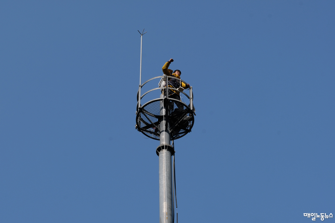 한화오션 거제사업장 하청 노사가 2024년 임금·단체협약에 잠정합의했다. 18일로 96일째 고공농성중인 김형수 금속노조 거제통영고성조선하청지회장은 19일 철탑에서 땅으로 내려온다.