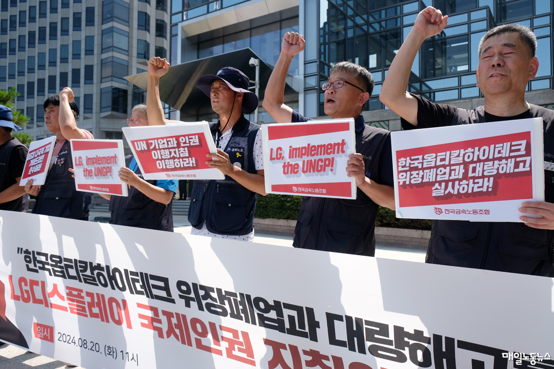 한편 한국옵티칼 해고노동자는 2022년 10월 구미공장 전소와 11월 청산결정 뒤 희망퇴직을 거부해 2023년 2월 해고됐다. 불탄 공장 부지 내 천막농성을 시작했고, 박정혜 지회 수석부지회장은 2024년 1월8일부터 이날까지 540일간 고공농성을 하고 있다. 최근 산업통상자원부는 노조 등이 한국NCP에 제기한 경제협력개발기구(OECD) 다국적기업 가이드라인 위반에 대해 조정절차를 개시하기로 했다.