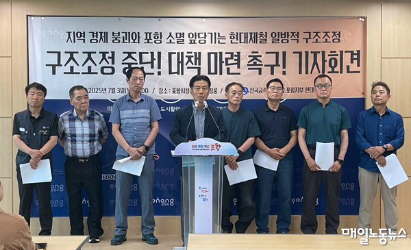 포항시도 제대로 된 대처를 아예 하지 못했다고 꼬집었다. 기자회견 참가자들은 “포항시는 2021년부터 주소이전 지원금 같은 단기적 인구정책을 내놨지만 산업과 일자리가 무너지면 인구정책은 무의미하다”며 “우리에게 필요한 것은 구조조정 대응과 고용안정, 철강산업 정상화를 위한 대책”이라고 강조했다.