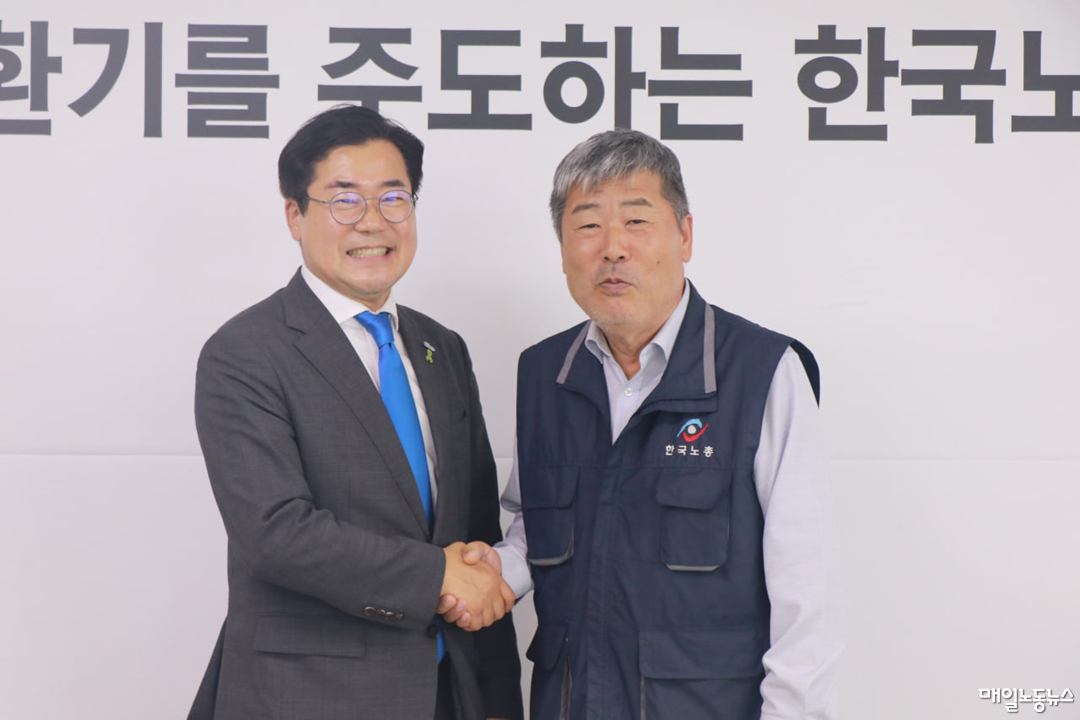 더불어민주당 대표 선거에 출마한 박찬대 의원이 한국노총을 찾아 “우정과 신뢰를 나누는 사이로 발전하자”고 했다. 한국노총은 “위원장으로서 응원한다”고 화답했다.