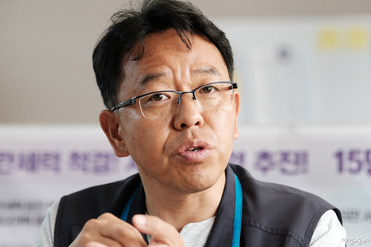 김광창(48·사진) 서비스연맹 위원장이 <매일노동뉴스> 인터뷰에서 가장 강조한 말이다. 서비스연맹은 노조를 꾸리기도 어려운 특수고용·플랫폼 노동자를 조직화한 산별연맹이다. 일을 노동으로 인정받는 것부터 시작해야 하는 노동변화의 최전선에 있다. 9일 오전 서울 서대문구 연맹 위원장실에서 총파업에 나서는 이유를 들어봤다.