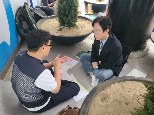 기자는 다음날인 6월25일 오전 ‘1호 노동자’ 김정봉씨를 인터뷰하기 위해 다시 서울노동청을 찾았다. 질문을 하고 있던 와중에 김영훈 후보자가 농성장을 방문했다. 김정봉씨도 예기치 못한 ‘깜짝 방문’이었다. 김정봉씨는 주얼리 노동자를 포함해 작은 사업장에서 발생하는 만연한 근로기준법 위반 문제와 관련해 근로감독이 필요하다고 다시금 호소했다. 화공약품에 노출되며 건강권을 위협받고 포괄임금제로 노동에 대한 정당한 대가를 받지 못하는 실태도 전달했다. 김영훈 후보자는 김정봉씨와 2차 면담에서 다시 한번 “대책을 고민하겠다”고 답했다.