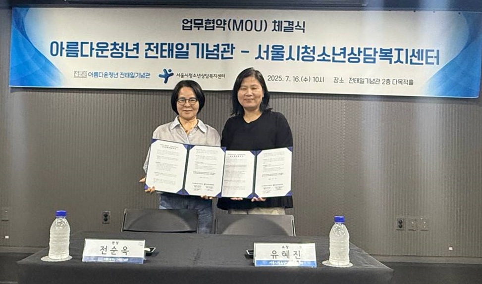 전태일기념관은 지난 16일 서울 종로구 전태일기념관에서 센터와 청소년 노동인권 보호 및 권리 보호 실현을 위한 업무협약을 체결했다고 18일 밝혔다. 업무협약은 고용노동부 청소년문화교육 ‘청바지 : 청소년 노동인권 바로알고 지키자’ 사업의 일환으로 추진됐다.