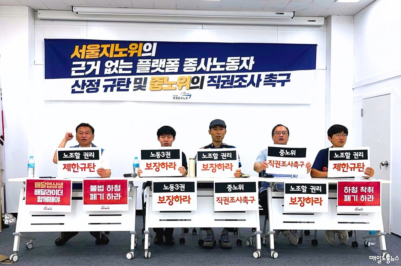 김주환 전 대리운전노조 위원장도 “플랫폼 노동자의 절박한 목소리를 외면한 결정”이라며 “서울지노위가 단순히 행정 편의만을 추구한 것을 넘어 자본의 편익과 결탁한 결정을 내렸다” 고 비판했다.