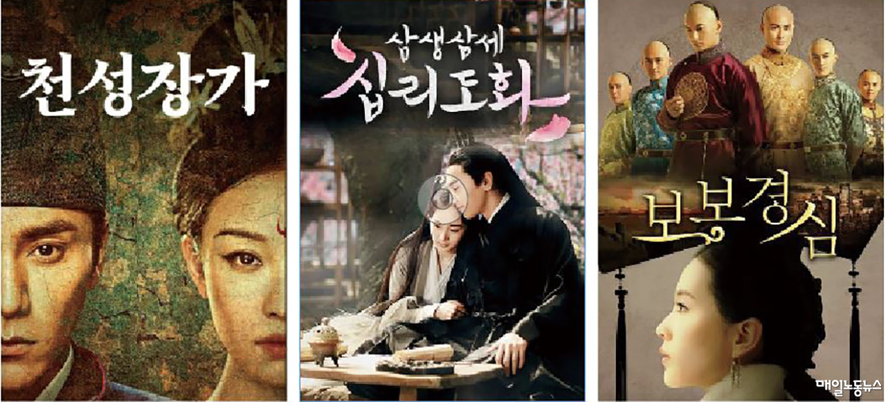 한층 나아가 ‘타임슬립’이라는 장치를 통해 과거로 가서 실제 역사적 인물과 엮이는 내용의 작품도 있다. 대표적인 작품이 ‘보보경심’이다. 현대 중국 여성 장효가 우연한 사고로 청나라 귀족 여성으로 타임슬립한다. 그는 강희제의 8황자 궁에 머물며 다양한 황자들과 친분을 갖는데 그중 훗날 옹정제가 되는 4황자와 사랑하고 이별하는 이야기다. 이 작품은 우리나라에서도 ‘보보경심 려’라는 제목으로 리메이크했다. 슬픈 OST는 지금까지도 마음에 남아있다.