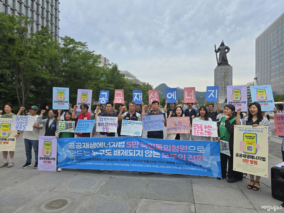 청원인은 태안화력발전소 노동자인 이태성 공공운수노조 발전비정규직연대 집행위원장이다. 이 집행위원장은 올해 말부터 석탄화력발전소 폐쇄가 본격화하며 고용불안에 내몰린 비정규 노동자와 민영화된 에너지 시장, 기후위기 대책 필요성을 절감하며 청원에 나섰다. 그는 “전력공급은 국민의 기본적인 권리와 직결된 공공서비스로 전력생산과 공급은 투명성과 책임을 높여야 한다”며 “민간기업은 공익보다 수익성을 우선해 운영하기 때문에 재생에너지는 공공이 주도해야 한다”고 밝혔다. 이어 그는 “기후재앙과 폭염·폭우로 위태로운 삶이 지속되는 가운데 공공재생에너지 청원에 함께한 시민들께 감사인사를 전하고 싶다”며 “공공재생에너지라는 새로운 희망을 품으며 발전노동자는 기후위기를 심화하는 노동을 거부하고, 우리 손으로 삶의 터전인 석탄화력발전소를 폐쇄하려 한다. 이제 국회가 답해야 할 때”라고 강조했다.