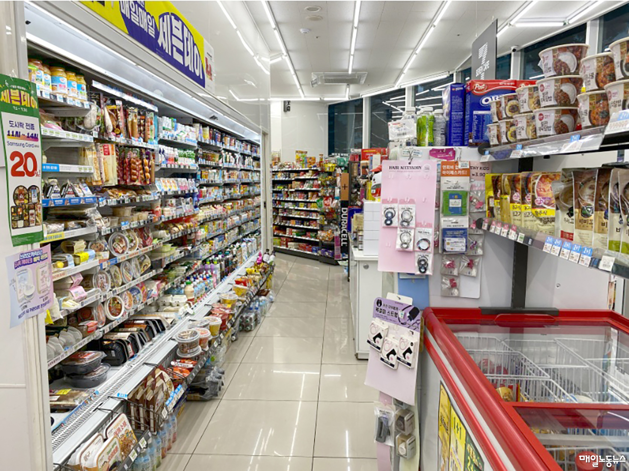 휴가철이라는 걸 느끼는 건 이런 게 없는 것이다. 매장 안 복도에 낮은 성벽처럼 쌓인 파란 물류 박스, 그 틈 사이에서 늦은 점심을 해결하러 온 직장인, 하굣길에 들러 물류 박스를 비집고 복도를 오가는 초등학생들, 그들이 지저분한 테이블에 엉겨붙어 컵라면과 도시락을 먹는 풍경.