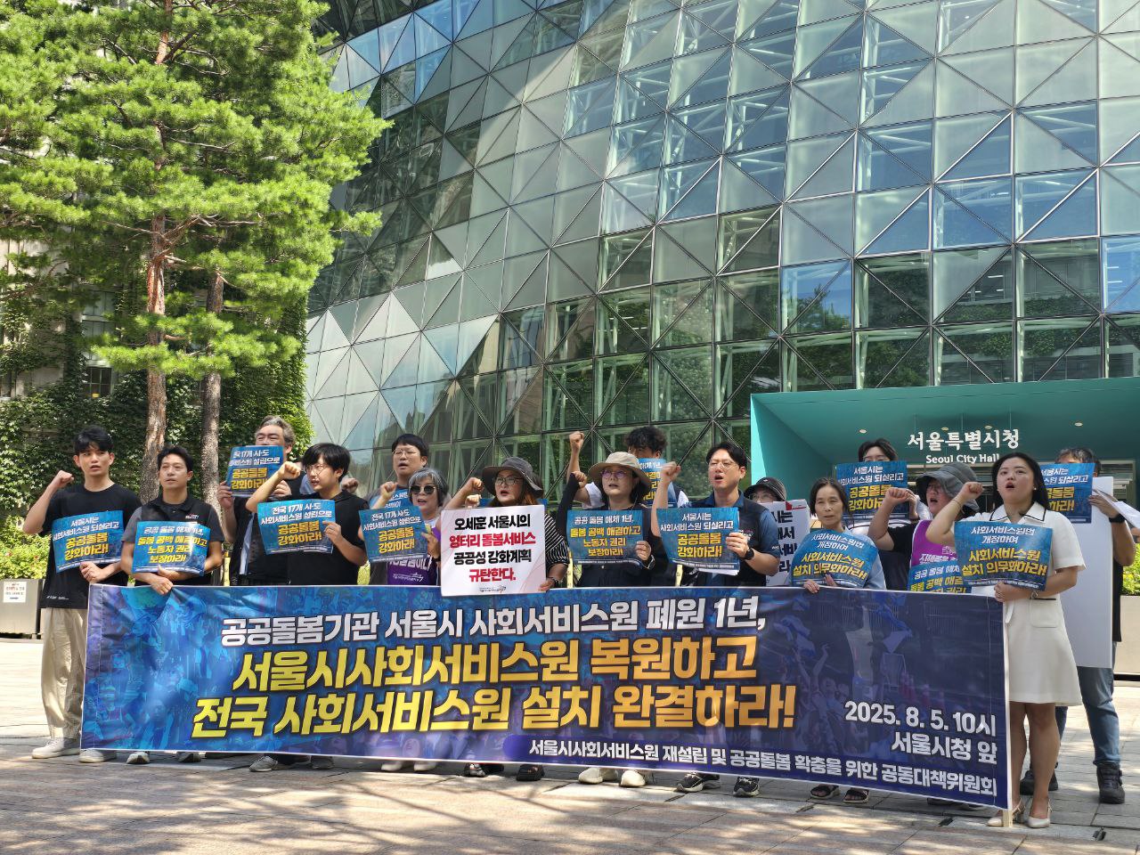 대책위는 “서울시민은 돌봄재난을 해결할 컨트롤타워와 직접서비스를 제공할 공공 주체를 원한다”며 “서울시는 서비스원을 재설립하고, 중앙정부는 설립 및 운영 책임을 지고 충분한 예산을 보장하라”고 주문했다.
