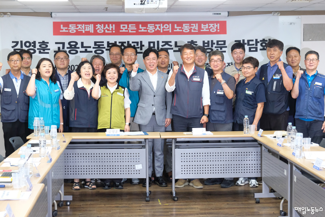 한편 이날 간담회가 열린 민주노총 건물 1층에는 한국옵티칼 해고노동자와 홈플러스 노동자 등 현안 사업장 노동자들이 모여 김 장관에게 사태 해결을 촉구했다.