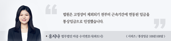 결론부터 말하면, 법원은 고정성이 개념요소에서 제외되기 전부터 장기근속격려금과 같이 근속기간에 연동된 임금을 통상임금으로 인정해 왔습니다. 근속기간은 근로자의 숙련도와 밀접하게 관련되어 있어 있으며, 회사에 제공한 소정근로의 가치를 평가하는 중요한 척도로 작용합니다.