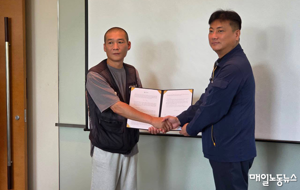 HD현대건설기계 사쪽과 근로자지위확인 소송 원고 대표가 20일 서명한 합의서를 보면 회사는 원고들(25명)을 2026년 1월1일자로 고용하며, 직무와 배치는 회사의 인력운영 계획 등을 고려해 상호 협의를 통해 결정하기로 했다. 또 회사가 원고들에게 지급하는 임금 등 금품의 대상과 범위는 하급심 판결에 따르기로 했다.