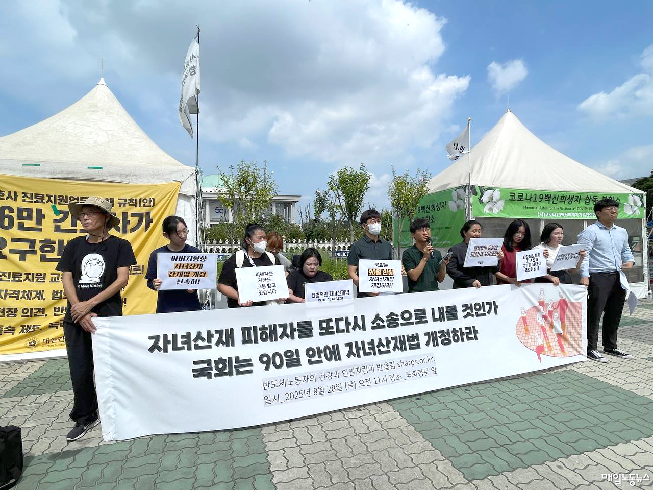 반도체산업 자녀산재 피해자가 이른바 자녀산재법(산업재해보상보험법) 개정을 촉구했다. 소급적용을 제한하고 남성노동자 영향을 배제한 대목을 겨냥했다.