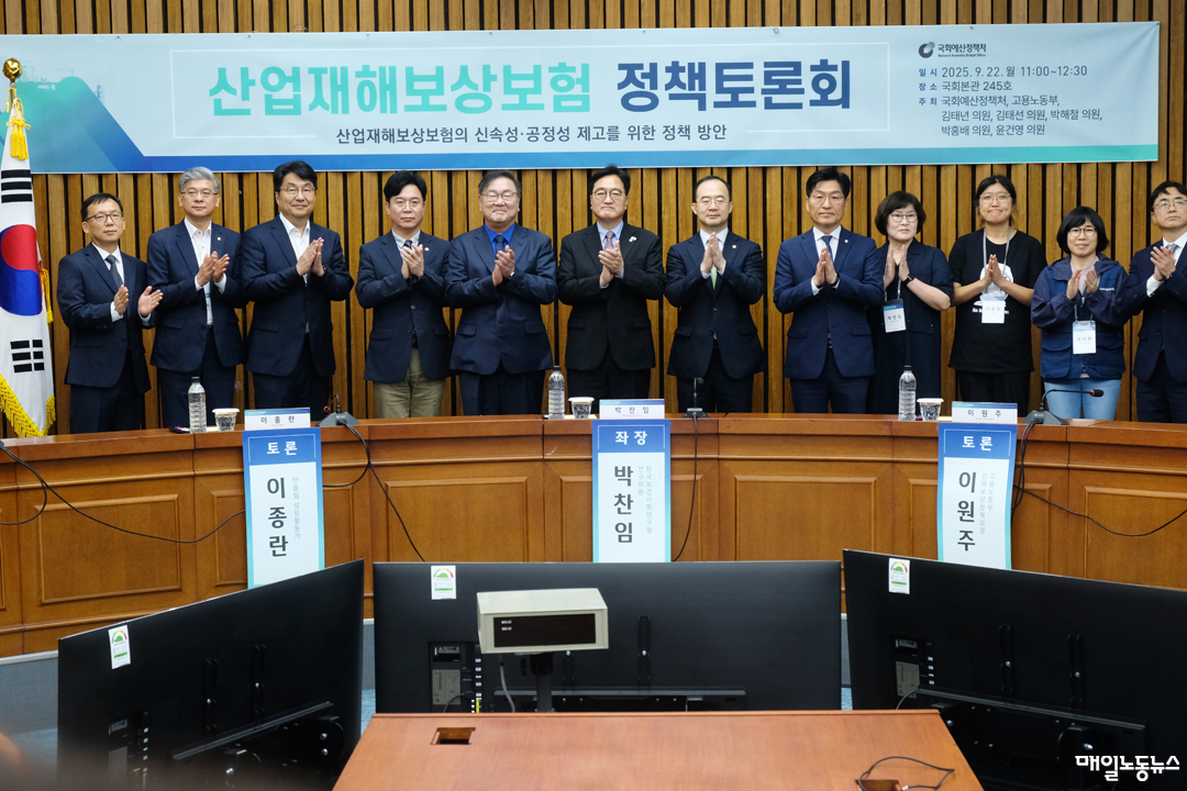 22일 오전 국회 본관에서 산재급여 선보장 방안 등을 논의하기 위한 ‘산업재해보상보험의 신속성·공정성 제고를 위한 정책 방안’ 토론회가 열렸다. 이날 토론회는 국회예산정책처와 고용노동부, 김태년·김태선·박해철·박홍배·윤건영 더불어민주당 의원이 공동 주최했다.