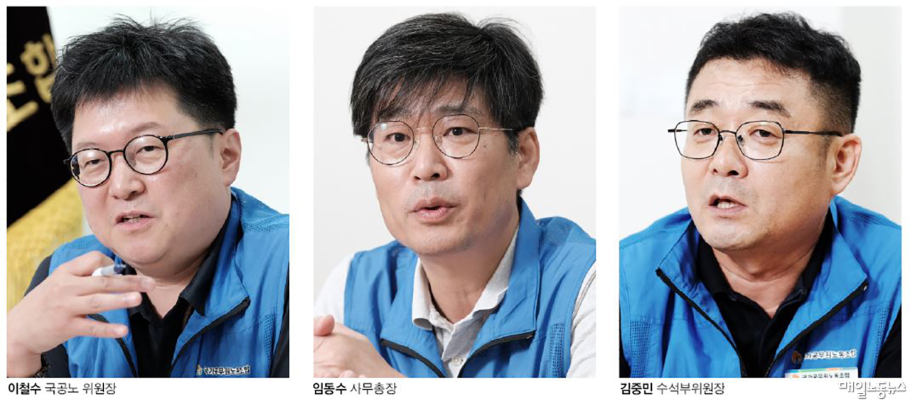 지난 8월 국가공무원의 숙원이 행정부교섭을 통해 결실을 맺었다. 2023년 행정부교섭 타결은 국가공무원의 근무여건을 대폭 개선한 결과를 이끌어냈다는 평가를 받았다. <매일노동뉴스>는 지난 26일 오전 서울 용산구 국가공무원노조 사무실에서 행정부교섭 노측대표·간사를 맡은 국공노 임원단을 만나 이야기를 들었다. 이철수(51) 위원장, 임동수(53) 사무총장, 김중민(53) 수석부위원장을 인터뷰했다.