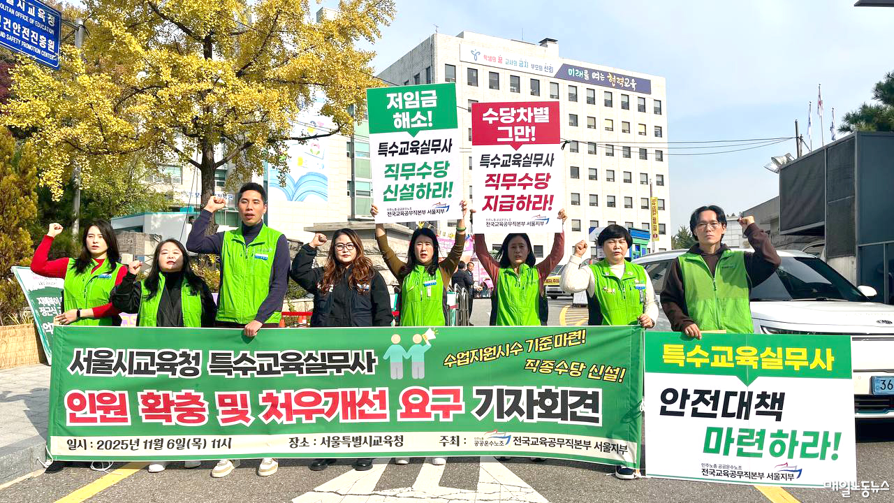 특수교육대상 학생의 교육과 일상생활을 지원하는 특수교육실무사가 서울시교육청에 직무수당 신설과 인력충원을 촉구했다.