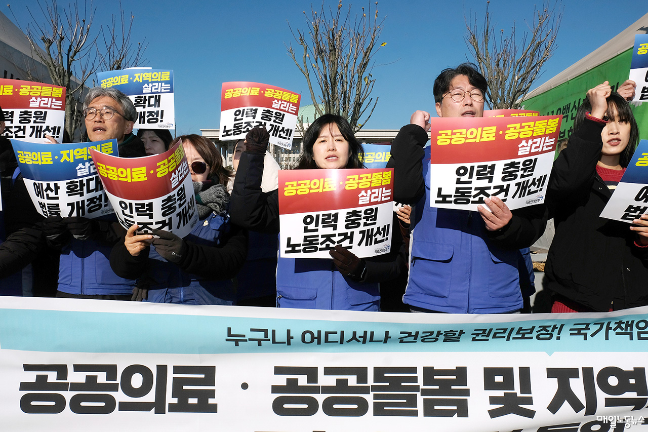 박경득 본부장은 “새 정부가 공공의대를 설립해 공공의사를 양성하고, 지역의료를 살리겠다고 약속했지만 법과 예산을 찾아볼 수 없다”며 “보건복지부 예산에도 6천억원에 가까운 국립대병원 적자를 해결할 방안이 없고, 공공돌봄을 확충할 예산이 없다”고 밝혔다.