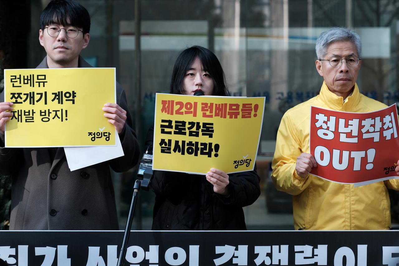 주 80시간 노동 끝에 숨진 런던베이글뮤지엄(런베뮤) 청년 노동자 과로사 사건과 관련해, 정의당이 고용 규모를 축소·위장해 근로기준법 적용을 회피하는 ‘제2의 런베뮤’ 사례를 고발하며 제도 개선을 촉구했다.