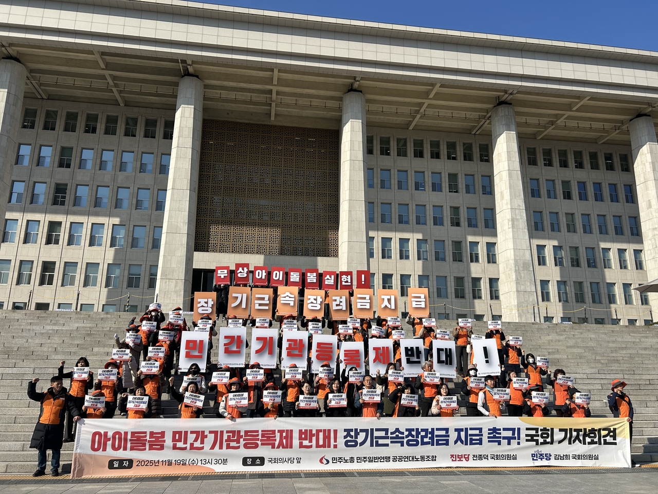 노조는 “아이돌봄 장기근속수당을 반영한 내년 예산안이 국회 예결위에 상정됐다”며 “국회 예결위는 정치적 계산을 떠나서 저출생 문제 해결을 위한 아이돌봄 확대 핵심 문제인 장기근속예산을 의결해야 한다”고 강조했다.
