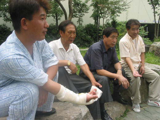 8월 30일, 경기도 광명시 철산동 광명성애병원. 산재환자들 400여명이 몰려 있는 이 병원은 수도권에서 산재환자들이 가장 많은 곳이다. 손, 발이 기계에 눌리거나, 찍혀 다친 환자들로 병원은 분주했다. 병원 앞 벤치에서 휴식을 취하고 있는 노동자들. 손을 내보이며 서로의 상태와 안부를 묻는다.