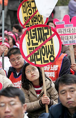 한국노총도 1일 성명을 내 “정부가 2일 국무회의를 열어 비정규 관련 법안을 통과시킨다면 6일 열리는 양대노총 결의대회를 비롯해 여당 지구당사 항의방문 및 농성, 국회 앞 천막농성 투쟁 등 반정부 투쟁을 벌여나갈 것”이라고 경고했다.