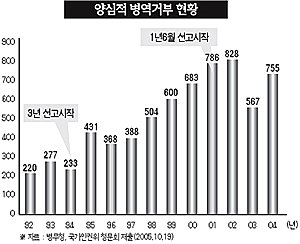 20여명도 채 안 되는 숫자. 2000년 이후 종교적 사유가 아닌 일반 병역거부자는 17명이었다. 96학번인 나씨가 병역거부를 결정하게 된 계기도 쉽지는 않았다. 감옥에 대한 두려움, 부모님에 대한 미안함, '빨간딱지'가 주는 사회생활의 제약 등. 학생운동을 통해 단련된 그였지만 조직적인 운동도 아니고 개인의 소신과 용기가 더욱 필요한 방식은 생소했다.