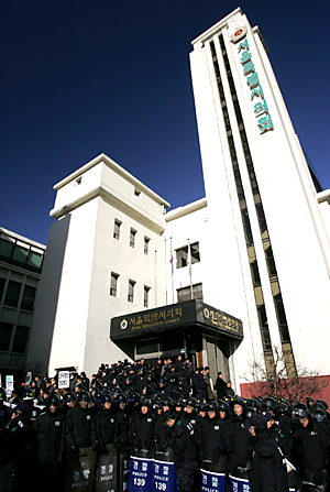 이전 기사보기 다음 기사보기 2025-11-26 “단 한번의 공청회도 없었다” 바로가기 복사하기 본문 글씨 줄이기 본문 글씨 키우기 스크롤 이동 상태바 사건ㆍ사고 “단 한번의 공청회도 없었다” 기자명 정기훈 객원사진기자 입력 2005.12.13 12:54 댓글 0 다른 공유 찾기 바로가기 본문 글씨 키우기 본문 글씨 줄이기 이 기사를 공유합니다 페이스북(으)로 기사보내기 트위터(으)로 기사보내기 카카오스토리(으)로 기사보내기 URL복사(으)로 기사보내기 닫기 민주노동당 서울시당은 13일 오전 9시부터 서울시의회 앞에서 ‘서울특별시 자치구의회의원 선거구와 선거구별 의원정수에 관한 조례 일부개정조례안’통과에 반대하는 집회를 열었다. 집회 참가자들은 “공청회 자신없는 서울시의회 자폭하라”, “의견수렴 없는 조례 통과 결사반대” 등을 외치며 서울시의회 의원들이 시의회로 들어가는 것을 저지했다. 이에 경찰들이 진압에 나서, 20여명의 당원들이 연행됐다. 정기훈 객원사진기자 labortoday@labortoday.co.kr 저작권자 © 매일노동뉴스 무단전재 및 재배포 금지 SNS 기사보내기 공유 이메일 기사저장 관련기사 서울시의회 ‘나눠먹기’ 선거구 획정안 통과 댓글삭제 삭제한 댓글은 다시 복구할 수 없습니다. 그래도 삭제하시겠습니까? 비밀번호 닫기 기사 댓글 0 댓글 접기 댓글입력 권한이 없습니다. 댓글 내용입력 비회원 로그인 이름 비밀번호 댓글 내용입력 댓글쓰기 계정을 선택하시면 로그인·계정인증을 통해 댓글을 남기실 수 있습니다. 회원 로그인 이름 비밀번호 자동등록방지 로그인 옵션 창닫기