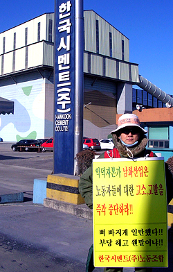 담을 붙이고 같은 시멘트를 생산하고 있는 ‘수성시멘트’는 조합원이 불과 5명에 지나지 않는다. 공장 규모도 한국시멘트보다 작다. 그러나 그들이 집회를 할 때면 항상 3~4백명의 사람들이 모인다. 그것이 연대의 힘이다. 그런 수성시멘트노조는 ‘민주노총’ 소속이다. 솔직히 조합원들은 그게 그저 부러울 뿐이다.