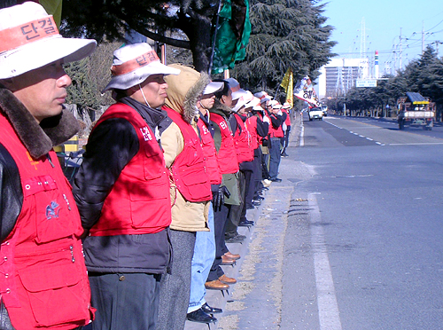 그게 아니다. 벌써 넉달째 집에 생활비 한푼 못 갖다준 이들이다. ‘집안 사정이 어떤지 아느냐’는 아내의 푸념에도 마음속 괴로움을 씹으며 아무말도 못하고 집을 나설 수밖에 없는 이들이다. 불과 3주전 전까지는 광주 한국시멘트 본사 앞에서 영하를 넘나드는 기온 속에서도 20여일이 넘게 노숙투쟁을 해 왔던 이들이다. 무엇보다 파업이 하루빨리 끝나 직장으로 돌아가고 싶고 그것을 위해서 무슨 짓이라도 하고 싶은 사람들이 바로 이들이다.