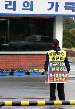 그는 지난해 1월 농성이 시작된 후 하청업체들이 농성자들을 잇따라 해고하고 농성장 단전단수까지 벌이자 이에 항의하며 16일간 단식농성에 들어갔던 다섯명의 여성조합원 중 한 명이다. 중학교 3학년, 고등학교 3학년 자녀를 두고 있는 그는, 손에 쥐어지는 20여만원의 돈을 갖고 2월 한달을 살 생각에 난감하기만 하다.