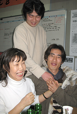 음식 준비가 거의 끝나가는 순간 239일간 동거동락했던 ‘동지’들이 사무실로 하나둘 들어온다. 그중에서도 가장 반기는 사람은 며칠 전 출소한 하정기(35)씨. 현대차비정규직노조 1기 집행부 정책기획팀장을 맡았던 그는 업무방해 협의 등으로 수배생활을 하다가 구속됐다. 그리고 바로 일주일 전 석방됐다.