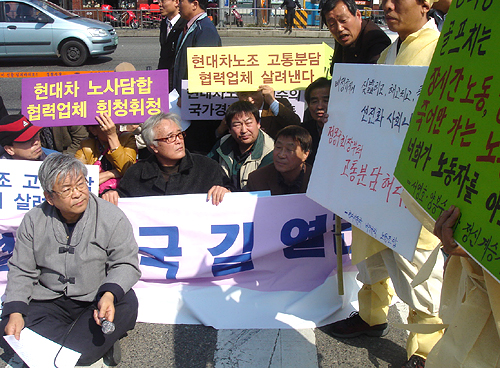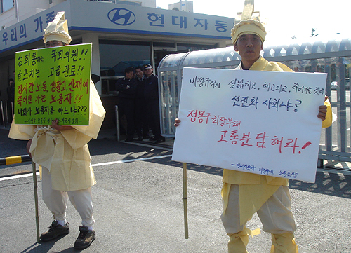 하지만 집회에서는 공동대표 및 임원진들의 발언과 성명서 낭독만 있었을 뿐 참가자들은 그 흔한 구호 한번 외치지 않았다. 물론 이날 집회는 미리 현대차가 한달치 집회신고를 미리 내놓은 탓에 ‘기자회견’ 형식을 빈 것이긴 하지만, 참가자들은 어떤 생각을 하는지 궁금하지 않을 수 없었다.