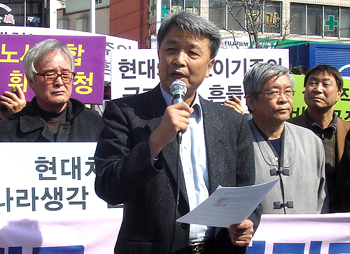 “지금 양극화가 사회적 문제로 확대되고 있는데, 현대차가 부품업체에 10%씩 납품단가인하(CR)를 요구하는 건 문제다. 감내할 수 있는 수준으로 경감시켜야 한다. 그런데 지금 현대차는 환율하락 등으로 매출감소 예상액이 2조2천억이나 된다고 한다. 노조가 고통분담에 나서지 않으면 현대차도 살아남을 수 없다."